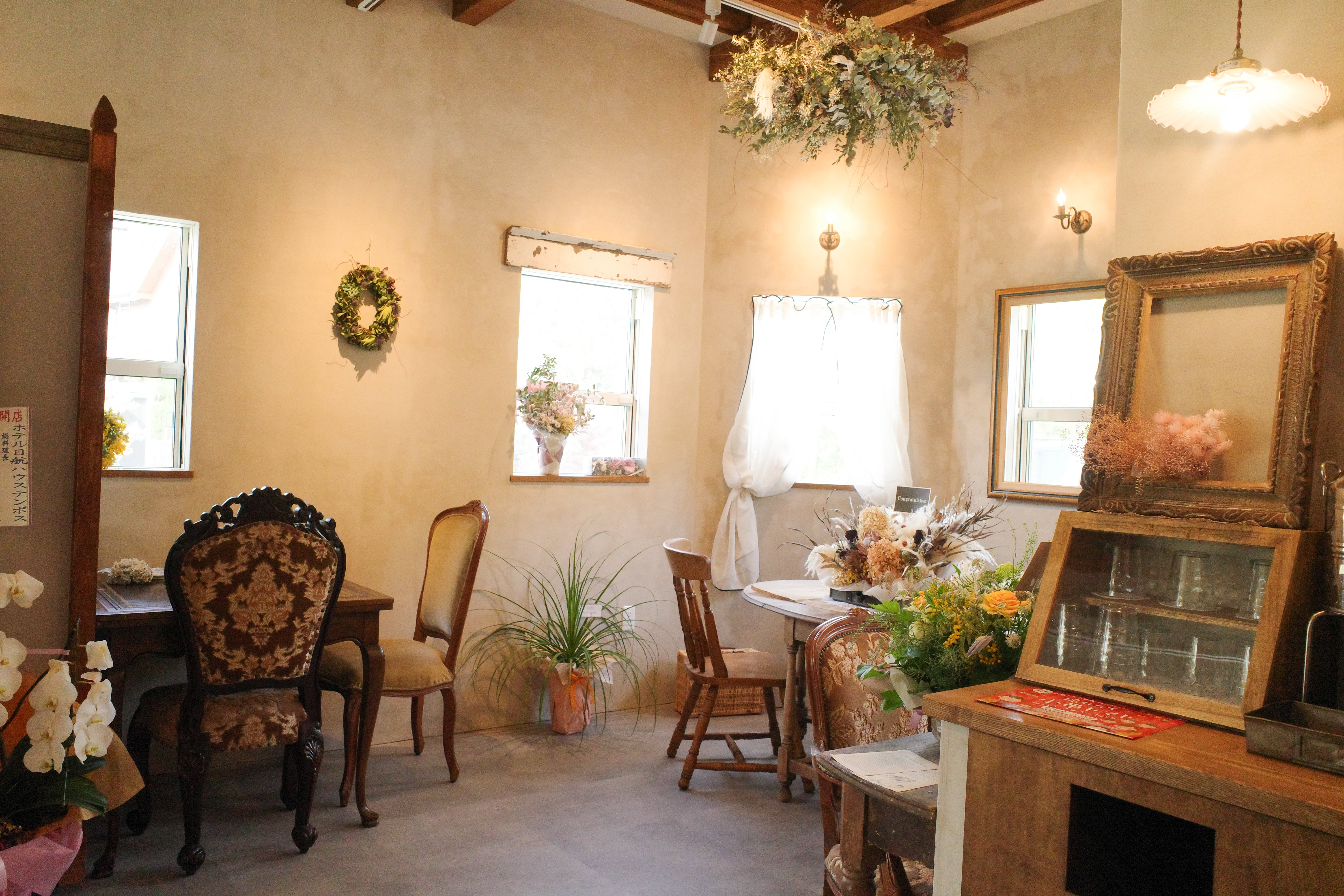 ドライフラワーやアンティーク家具が並ぶまるでおとぎ話のような店内は、なんと!ペット同伴OK🐶